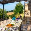 Offre alloggi di alta qualità a grandi gruppi nel cuore delle Marche, con vista sui lontani borghi collinari e sulle montagne.