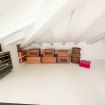 Soppalco con travi a vista e finestre a tetto per un ambiente piacevole e luminoso