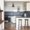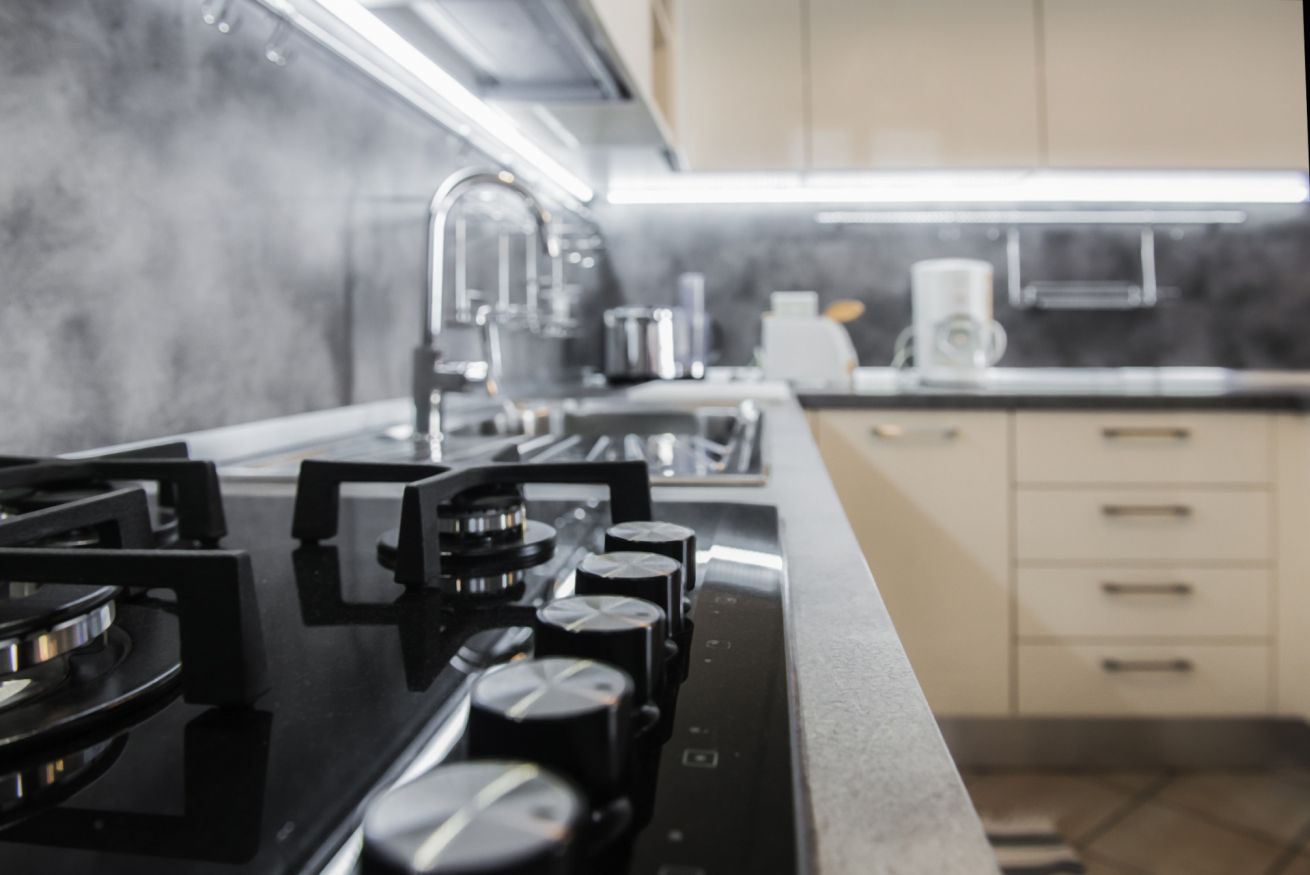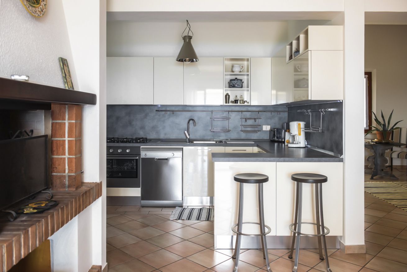 La cucina completamente attrezzata, con elettrodomestici moderni e macchina Nespresso, permette di vivere la casa come una vera residenza privata, con la possibilità di rendere ogni soggiorno ancora più speciale grazie al servizio di chef a domicilio.