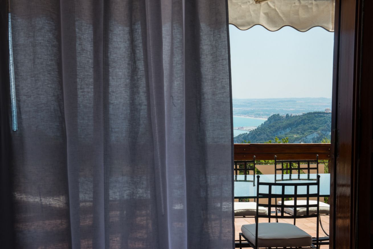 L’ampia zona living accoglie momenti conviviali e serate lente, mentre il grande terrazzo panoramico regala viste emozionanti sulla natura incontaminata del Conero.